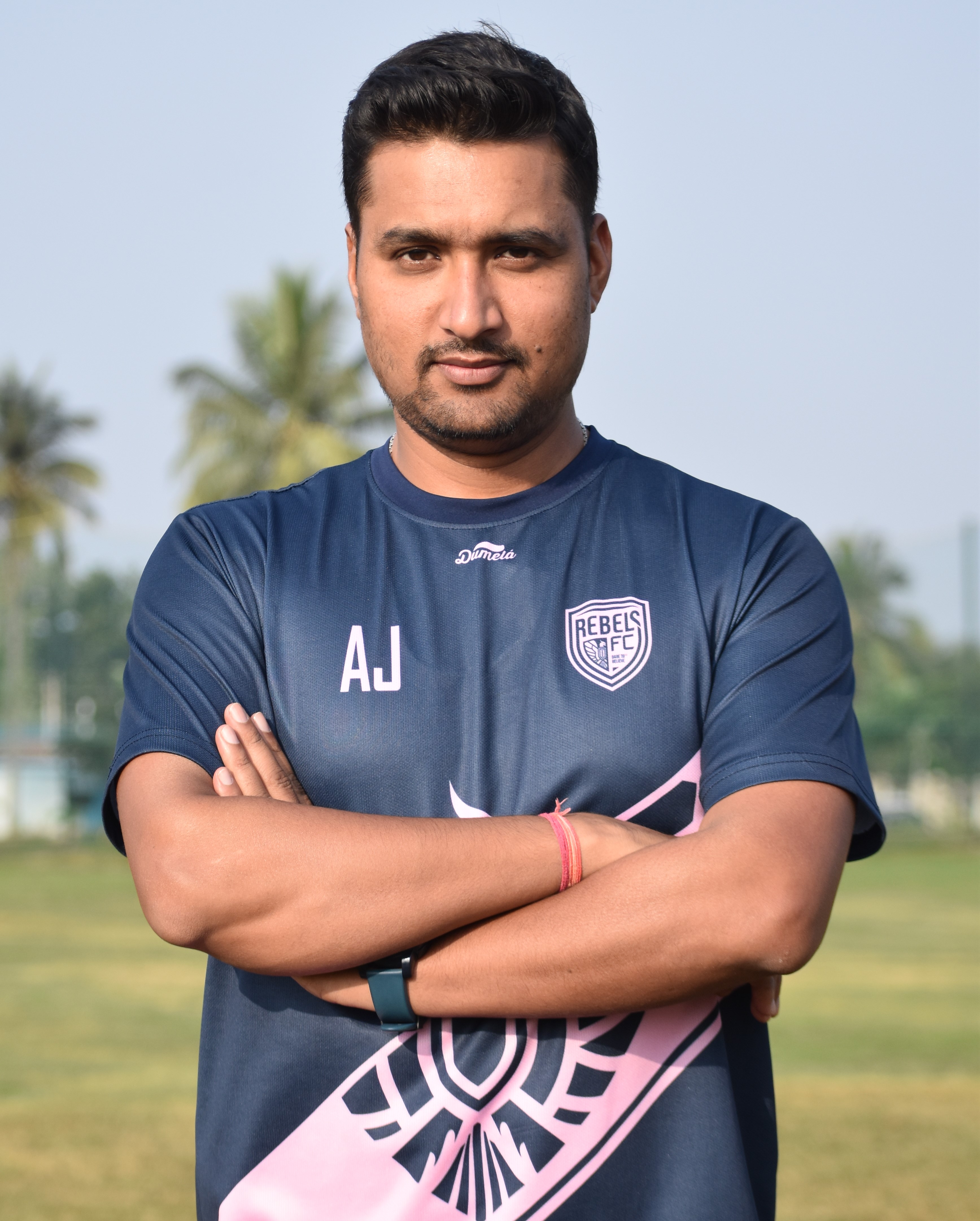 Ajay A Kumar, with 8 years of coaching experience, holds an AFC C License and is pursuing a UEFA C License. Certified in IPSO Scouting, USSF Grassroots, and Football Analytics, he also has a Diploma in Sports and Exercise Science and a B.E. in Chemical Engineering. Ajay has coached at Salgaocar FC, Gameday Academy, and PASS Collective, and currently coaches the U-18 and Reserve teams at Luca Soccer Club. He focuses on empowering players to find solutions, promoting adaptability and critical thinking. Ajay's achievements include promoting 11 players to the senior team and leading the U-18 team to a Youth Soccer League Championship. His innovative approach and strategic insights drive success at Rebels FC & Academy.